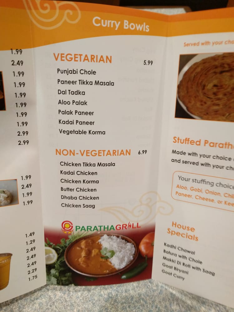 "Paratha Grill" in Artesia, CA, offers a diverse menu catering to both vegetarians and non-vegetarians. With a focus on traditional Punjabi dishes like Aloo Puri and Chole Bhatura, the restaurant also serves up delicious veg and non-veg appetizers such as Aloo Chat and Chicken Tenders. Customers rave about the freshly made parathas, with options like Aloo Gobi and Paneer Paratha receiving high praise. The cozy, dhaba-style ambiance adds to the dining experience, making you feel at home even if you're away from it. The friendly staff and quick service ensure a seamless visit, perfect for a quick lunch or a relaxed dinner. Whether you crave classic parathas or want to try something new, "Paratha Grill" is sure to satisfy your taste buds with its flavorful offerings.